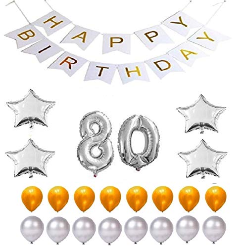 Color:80th Year SilverAdd a touch of elegance with these latex Balloons. Picture Perfect for any occasion be it a Brthdayanniversary or any other celebration. Mix and match with other colours or prints for a beautiful bouquet. Beautiful decorations makes a shiny Brthday party full of elegance for KDs and adults. Happy Brthday banner balloons keep your eyes on the theme. These gLosey foil balloons and confetti balloons are suitable for Brthemed parties of all ages party and create a great memories with your KDs family and friends. Lets enjoy a shiny and amazing party