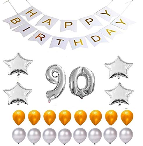 Color:90th year SilverAdd a touch of elegance with these latex Balloons. Picture Perfect for any occasion be it a Brthdayanniversary or any other celebration. Mix and match with other colours or prints for a beautiful bouquet. Beautiful decorations makes a shiny Brthday party full of elegance for KDs and adults. Happy Brthday banner balloons keep your eyes on the theme. These gLosey foil balloons and confetti balloons are suitable for Brthemed parties of all ages party and create a great memories with your KDs family and friends. Lets enjoy a shiny and amazing party