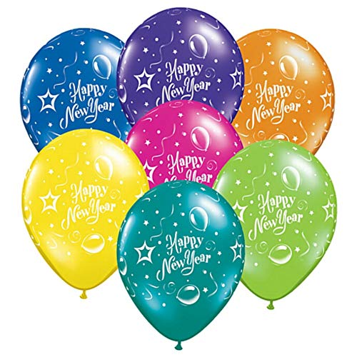 Evisha Happy New Year Multi Colour Big Size Latex Balloons 50 pcs