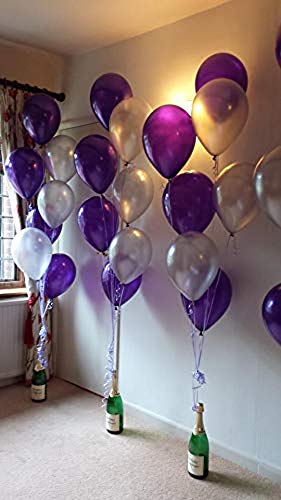 Color:Purple-SilverMetallic Finish Latex balloons are beautiful and fun addition to any party. No party would seem complete without balloons to play around with. Balloons are not just for KDs parties they can be used anywhere anytime and for any occasion you wish to celebrate. Whether it is a party in the office a Christmas bash a Small shower wedding or a causal party for friends balloons seem to be an essential of party supplies. Along with buntings balloons are the most favoured decorations for any occasion.