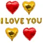 Masti Zone I Love You Golden Foil Alphabet Letter Balloon with 4 Pcs Golden Red Heart Shape Balloons for Valentines Day Wedding Anniversary Party Decoration