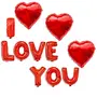 Masti Zone I Love You Red Foil Alphabet Letter Balloon with 3Pcs Red Heart Shape Foil Balloons for Valentines Day Wedding Anniversary Party