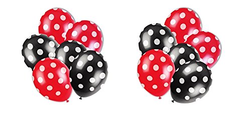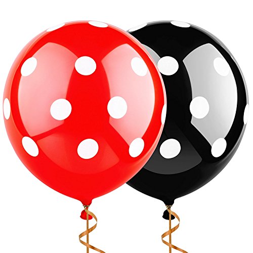 Application: Polka dot latex balloons make excellent decorations for variety of occations: Brthday/wedding parties holidays festivals big events. Unique colour assorted: polka dot latex balloons colours black and red assorted match your unique requirement. Can be filled with air/helium.