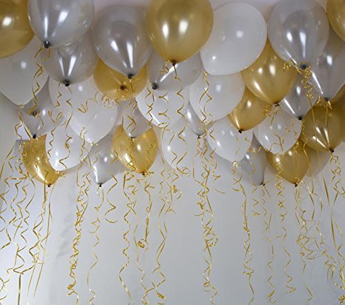 Give a royal look to your party with this combination of GOLD SILVER and WHITE latex metallic balloons for party decoration .Beautiful color combination for all kinds of celebrations be it 1st Brthday decoration Balloons for Brthday decoration Brthday decoration anniversary decoration balloons for Small shower decoration office party decoration new year party balloons kitty party decoration engagement and weddings. Party balloonsAnniversary party decoration 50th Anniversary decoration Golden jubilee decoration Brthday theme decoration Small shower decoration