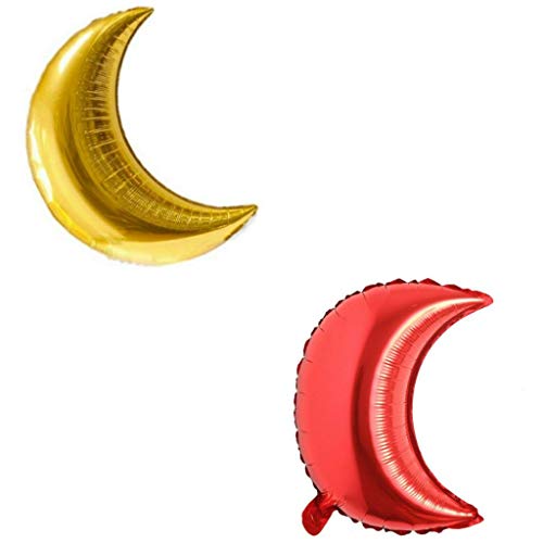 Moon Shape foil Balloons (Pack of 10 Golden + Red) for New Year Party Decorations