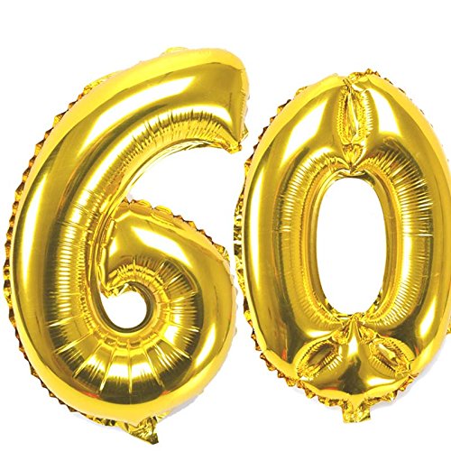 Number 60 Foil Balloon Gold (16inch), Birthday Party Supplies, Party Foil Balloon - Large/Kids Party Supplies, Theme Birthday Party, Foil Balloons, Birthday Balloons - Golden(6 & 0)