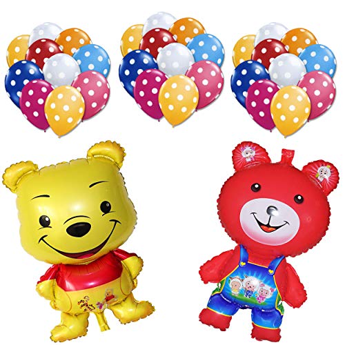 Pack of 4 (2Teddy Bear +2 Pooh ) Foil Balloons with 20 Multi Colour Polka Dot Balloons and 1 Pcs Hap