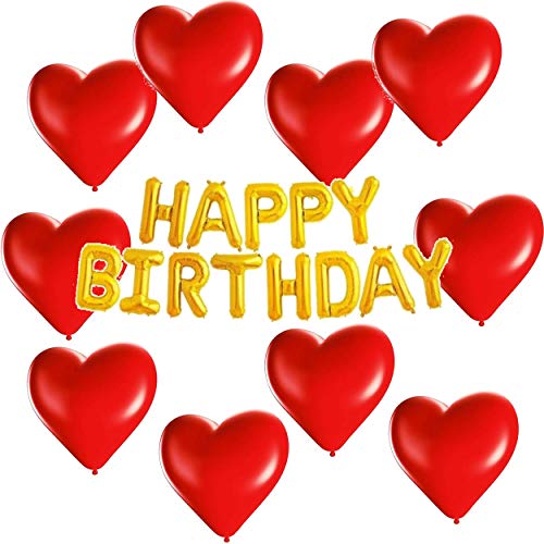 Masti Zone Pack of 50 Red Heart Shape Balloons with Happy Birthday Banner Foil Balloon Shape foil Balloon for Birthay
