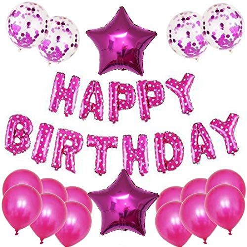 Color:PinkHappy Brthday Combo includes : 13 pcs Happy Brthday Banner + 1 Champagne Big Mylar Foil+ 30 Pcs Metallic balloons + Ribbon (Straw included to blow Foil Balloons )