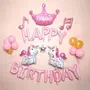 Pink Happy Brthday Foil Balloons with a Princess Crown Foil Balloons and 15Pcs Pink White and Golden Unicorn Balloons (Pink Princess Combo)