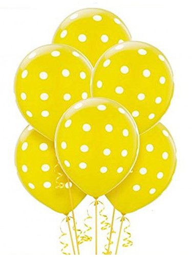 Color:YellowPremium-Quality Latex Balloons will "lift spirits" at every celebration! Choose from a wide variety of colors and sizes. Stretch Balloons before inflating for better elasticity.Beautiful RED Balloons polka dot for Brthday decoration and decoration in varied celebrations like 1st Brthday New year engagement bachelors party etc.Warning: Choking Hazard - b under 8 years can choke or suffocate on uninflated or broken balloons. Adult supervision required. Keep uninflated balloons from b.