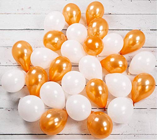 Hardatar Party Products 10 Inch Metallic Hd Shiny Toy Balloons - Orange, White for Decoration and Party (20 Pcs)