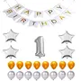 Jindal Party Products Happy Birthday 1st Year Party Balloons Decorations Set(No 1 Silver Foil Balloon+50 Gold & Silver Latex Balloon+1 White Happy Birthday Banner+ 4 Silver Star Foil Balloons)