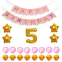 Jindal Party Products Happy Birthday 5th Year Party Balloons Decorations Set(No 5 Gold Foil Balloon+50 Gold & Pink Latex Balloon+1 Pink Happy Birthday Banner+ 4 Gold Star Foil Balloons)