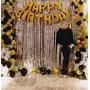 Hardatar Party Products Happy Birthday Foil Balloon (Golden) + 2 Pieces Silver Fringe Curtain (3 * 6 Feet) + Pack of 20 Pieces Metallic Balloons (Golden, Silver, Black)