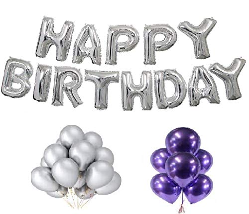 Size:Pack of 50|Color:Silver PurpleNote: Package Contains "HAPPY BrthDAY" SILVER COLOR Foil Letters Balloon & pack of 50 Pcs Purple & Silver Balloons . Other balloons in pic are not included. Due to different screens please allow the product visibility have a little differences from pictures shown.Because lights used during photo shoot of product.But quality of products are same as described.Every care has been taken to ensure that the product details are correct. All dimensions are measured by hand so there might be a very slight variation. Whilst the image is a true representation of the standard product slight variation in color replication may occur due to lighting/flash during photography or your monitor settings.