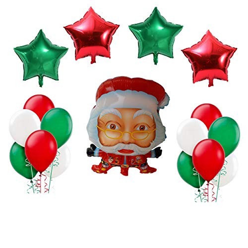 Masti zone Pack of 60 Red White Green Metallic Latex 12 " Balloons and 6 Star Shape Foil Balloon with 3Pcs Santa Claus Foil Balloon for New Year, Christmas, X mas Party