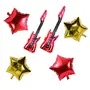 Pack of 4 Red Golden Star and 2 Pcs Guitar Shape Foil Balloons for Christmas New Year Valentine Day Theme Party Decoration