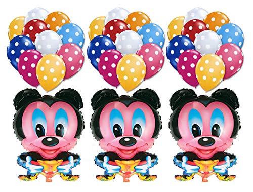 3 Pcs Cartoon Character Foil with 25 Multi Polka Dot Balloons for Brthday Theme Parties