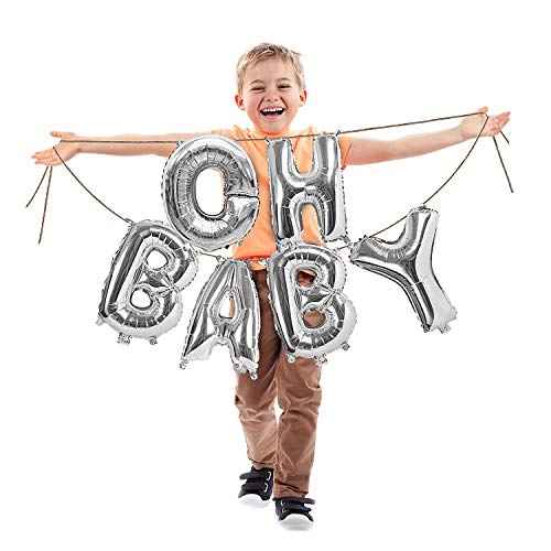 Silver Oh Small Foil Letters Balloons Banner Garland Hanging Party Kit for Small Shower Gender Reveal Party Supplies