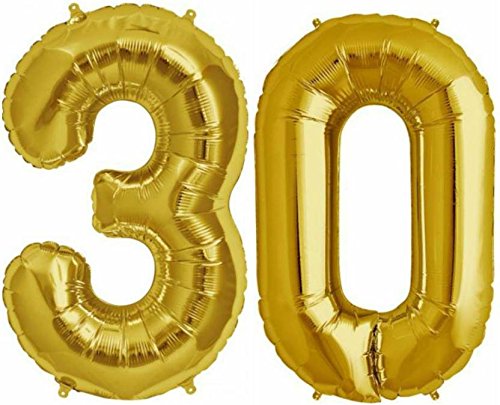 Balloonistics Solid 30 Number Foil Balloon 17 Inch Balloon (Gold, Pack of 2)