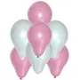 Don't have matallic color..it is simple plane pink and white balloons set. Also no happy birthday banner is provided.
