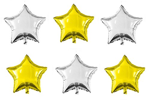 Theme My Party Star Foil Balloon 18 Inch - Gold & Silver Foil Balloons - 6 Pieces