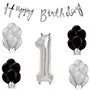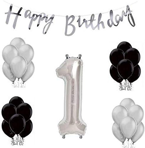 STOCK Happy Brthday banner with black/silver metallic balloons with foil number 2 (16 inches) black/silver 50pcs combo includes: 1 Silver happy Brthday banner Silver 16\ latex foil balloons number.; silver happy Brthday banner needs DIY before decoration.; happy Brthday banner makes your party more beautiful and attractive.