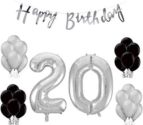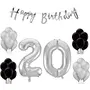 Stock Happy Brthday Banner with Black/Silver Metallic Balloons with Foil Number 20 (16 inches)