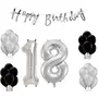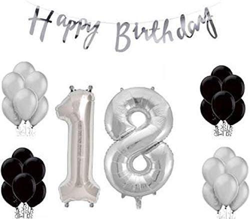Stock Happy Brthday Banner with Black/Silver Metallic Balloons with Foil Number18 (16 inches)