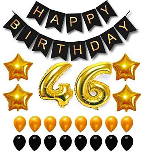 Stock Happy Brthday Black Paper Letters Balloon and Number Foil Balloon Set with 50 HD Metallic Black & Golden Balloons + 4 Star foil Balloon Kit (Pack of 57)