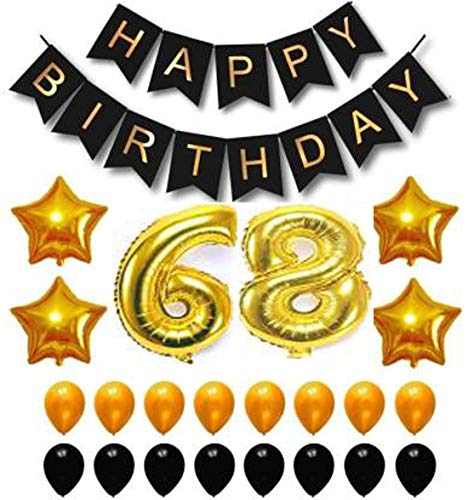Happy Brthday Black Paper Letters Balloon+Number Foil Balloon Set with 50 HD Metallic Black & Golden Balloons + 4 Star foil Balloons