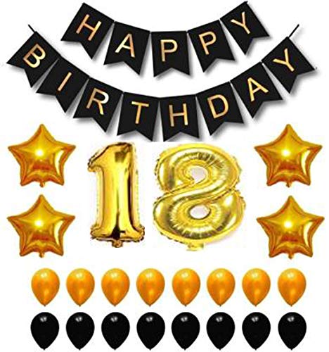 Happy Brthday Black Paper Letters Balloon+Number Foil Balloon Set with 50 HD Metallic Black & Golden Balloons + 4 Star foil Balloons