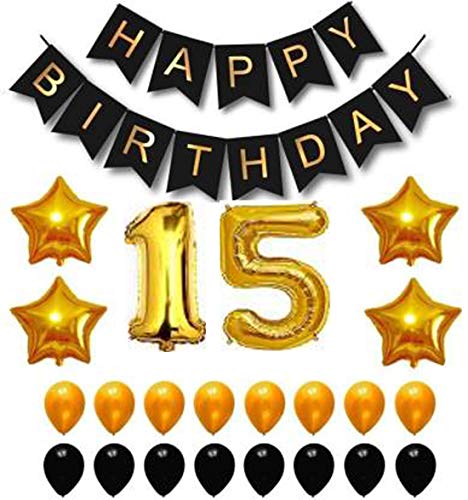 Happy Brthday Black Paper Letters Balloon+Number Foil Balloon Set with 50 HD Metallic Black & Golden Balloons + 4 Star foil Balloons