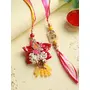Priyaasi Rakshabandhan Floral Beaded Fancy Lamba and Rakhi Set with Roli Chawal Greeting Card for Bhaiya-Bhabhi Bhai Brother Men - Traditional Stylish Rakhi (Set of 2)