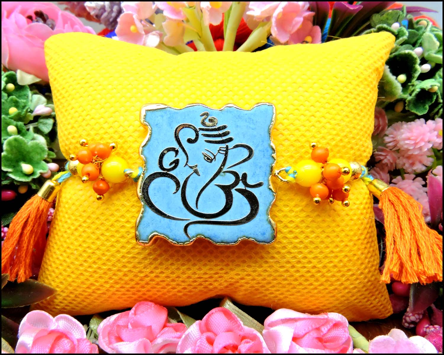 Rakhi Online - Ganpati Rakhi with Beads Rakhi For Brothers