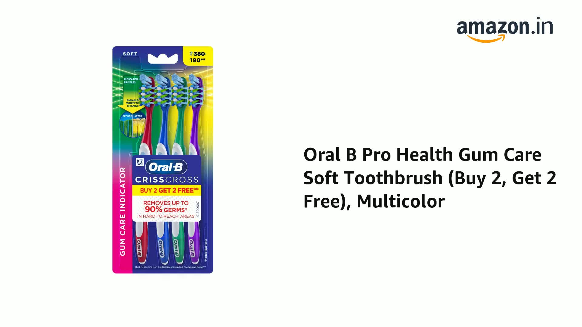 Oral-B is the World's No. 1 Toothbrush brand used and recommended by dentists worldwide which brings to you and your family revolutionary brushing solutions with best in class technology to ensure you and your family get healthier and cleaner mouth. Oral-B Criss Cross Anti-Plaque Toothbrush is designed to reduce up to 90% plaque in hard-to-reach areas* to give you a clean and healthy smile. Extra-long Power Tip bristles hit areas where plaque builds up and CrissCross bristles flex and straighten to get in-between teeth while still being gentle on your gums.