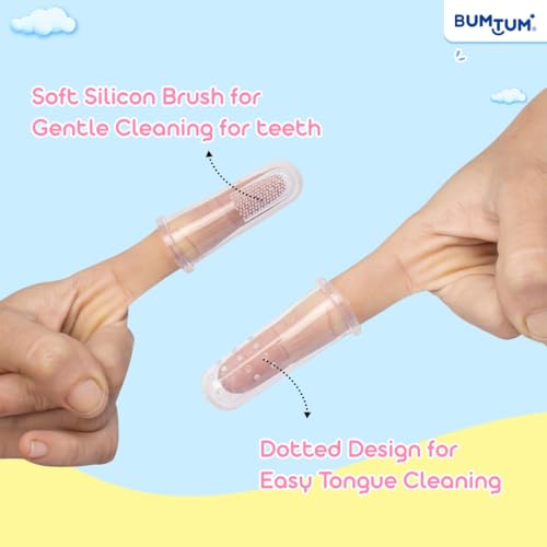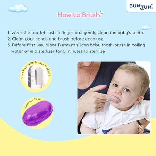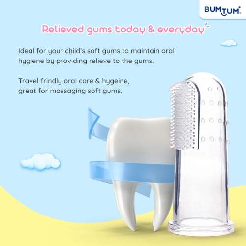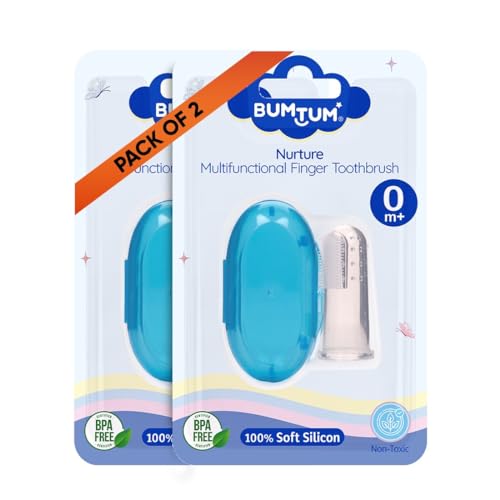 HomeBabyBaby Health CareBaby Oral CareBumtum Baby Finger Toothbrush with Soft Bristles & Carry Case| Finger Brush for Babies| Gentle Cleaning Hygiene of Gums/Tounge Designed for Kids (Blue, 2 Count)