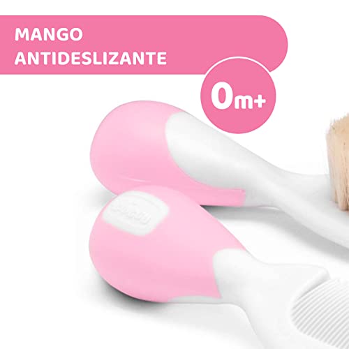 The brush and comb allows you to gently comb babys hair. The soft natural bristles of brush and comb teeth with rounded ends are ideal for baby`s delicate scalp. It has large handles that allow easy and safe grip.