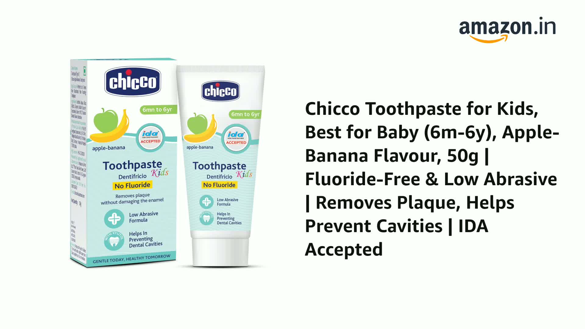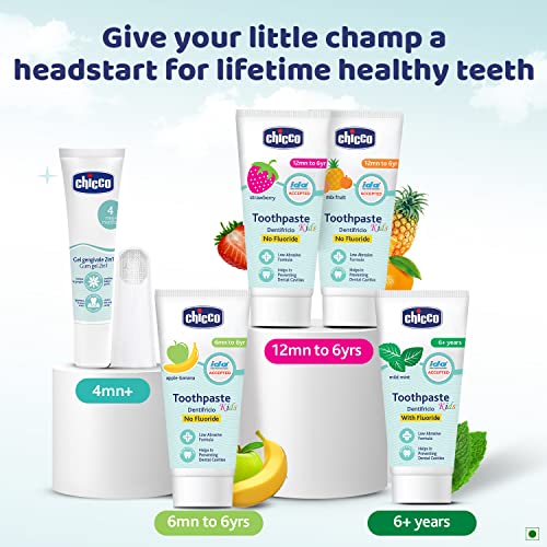 Chicco Toothpaste for Kids, Best for Baby (6m-6y), Apple-Banana Flavour, 50g | Fluoride-Free & Low Abrasive | Removes Plaque, Helps Prevent Cavities | IDA Accepted
