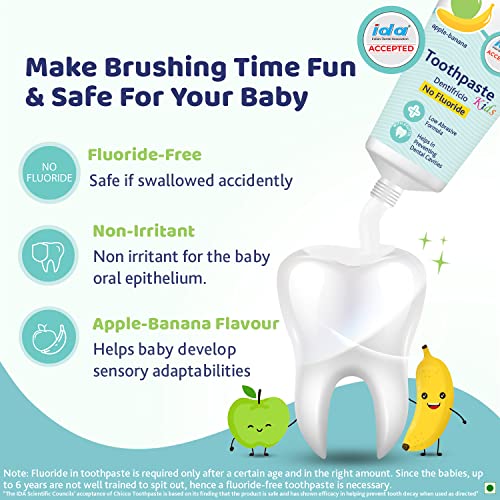Chicco Toothpaste Applebanana Flavour for 6m to 6Y Baby Fluoride-free Preservative-freeCavity Protection (50 millilitre) Accepeted by Indian Dental Association IDA. Trusted by experts