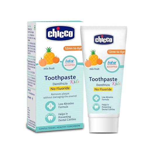 No fluoride Formula Fluoride is required only after a certain age and in right amount. Since babies are not yet trained to spit out excess fluoride intake may lead to Fluorisis. Chicco toothpaste range upto 6 years have no fluoride formula