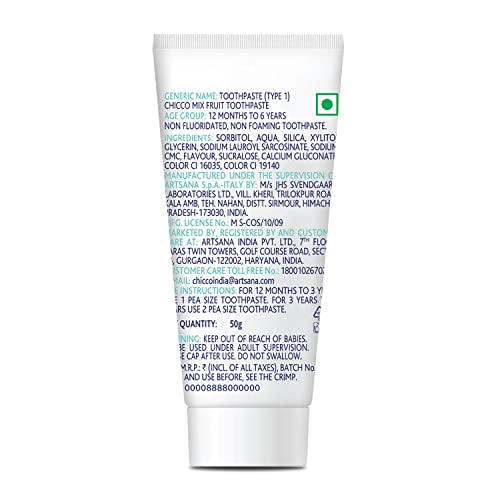Chicco Toothpaste Mixed Fruit Flavour for 1Y to 6Y Baby Fluoride-free Preservative-freeCavity Protection (50g)