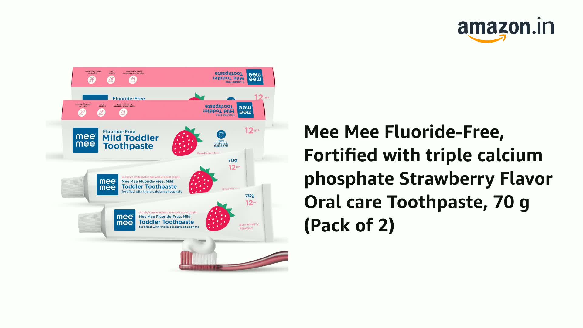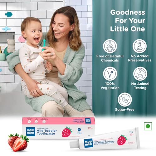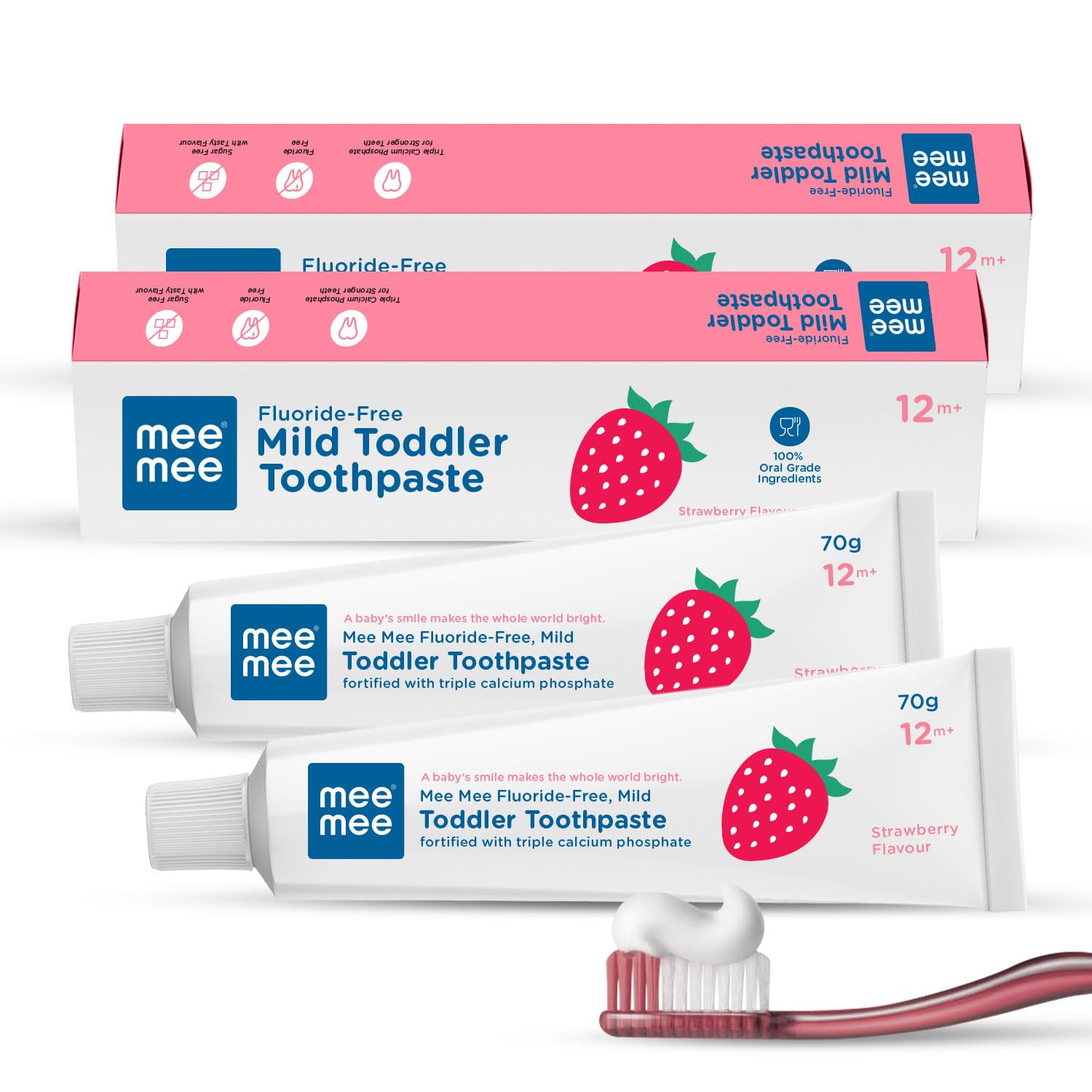 HomeBabyBaby Health CareBaby Oral CareMee Mee Fluoride-Free, Fortified with triple calcium phosphate Strawberry Flavor Oral care Toothpaste, 70 g (Pack of 2)