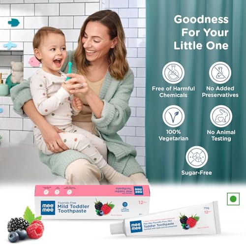 HomeBabyBaby Health CareBaby Oral CareMee Mee Fluoride-Free Baby Toothpaste for Kids Fortified with Triple Calcium Phosphate, Cavity Protection, Oral Care, Best for Baby 1 year +, 70 gram (Berry, Pack of 2)
