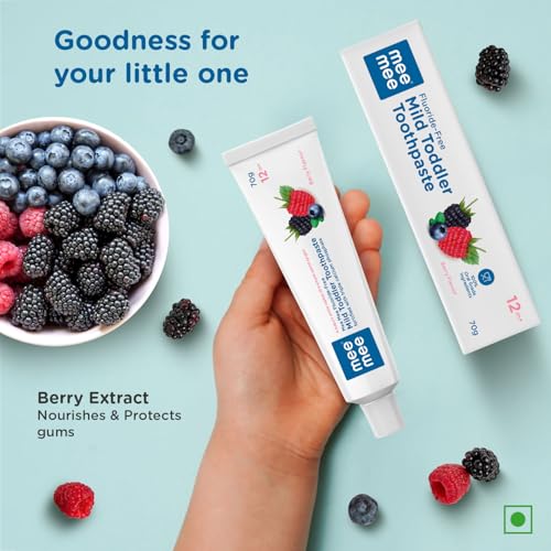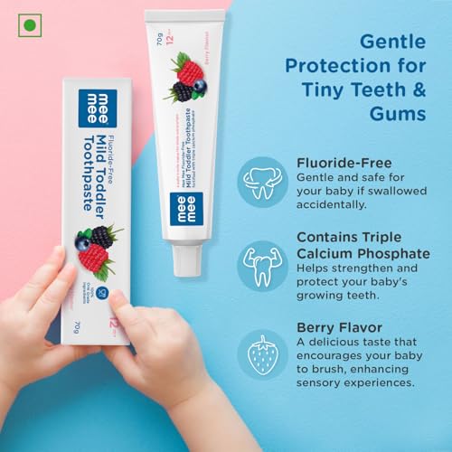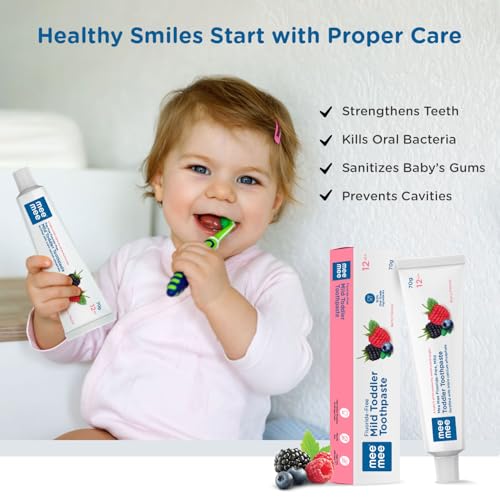 HomeBabyBaby Health CareBaby Oral CareMee Mee Fluoride-Free Baby Toothpaste for Kids Fortified with Triple Calcium Phosphate, Cavity Protection, Oral Care, Best for Baby 1 year +, 70 gram (Orange+Berry, Pack of 2)