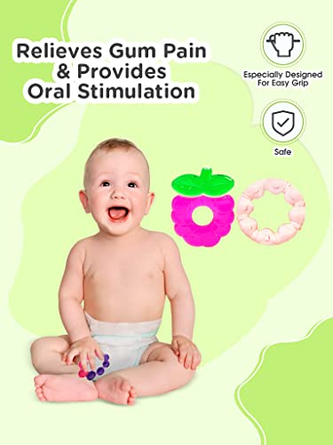 As your baby grows you will watch him/her try to chew on plenty of things to soothe his/her gums. Mee Mee multi-textured water filled teether not only provides gentle respite to the gums but also has a textured surface that provides the requisite amount of oral stimulation to your baby for enhanced gums development.