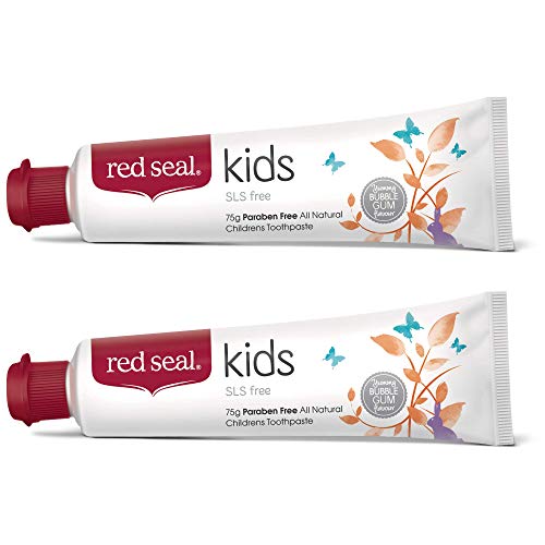 HomeBabyBaby Health CareBaby Oral CareRed Seal Toothpaste for Kids Non Fluoride & No SLS or Parabens - Mild Banana Peach Bubblegum Low Mint Flavor, Safe to Swallow Cavity Low Abrasive Remineralizing Toothpaste for Children (2 Pack)