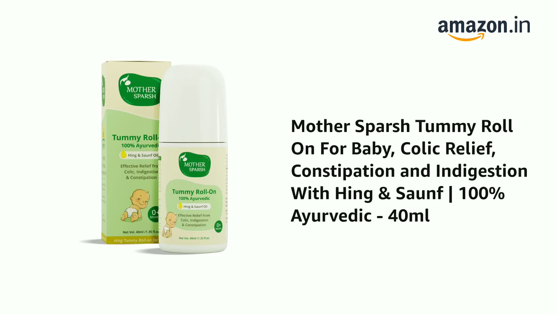 Mother Sparsh Tummy Roll On is an all-natural solution which is formulated with natural herbs that helps to treat colic and indigestion in babies. It is Ayurvedic with no preservatives alcohol or any other harmful chemicals.