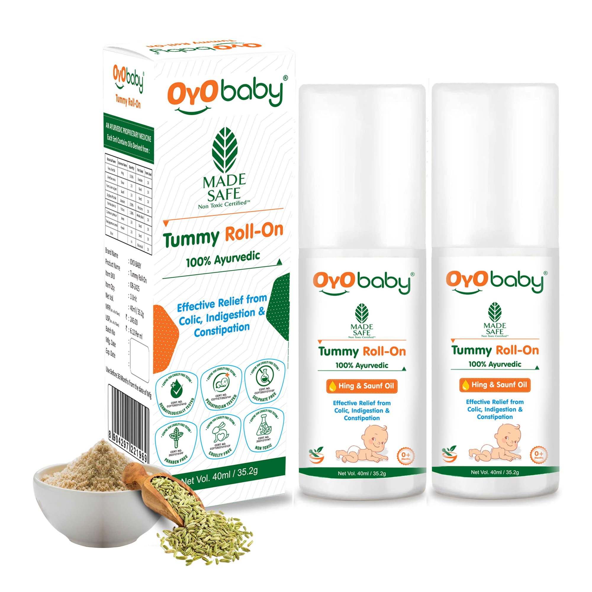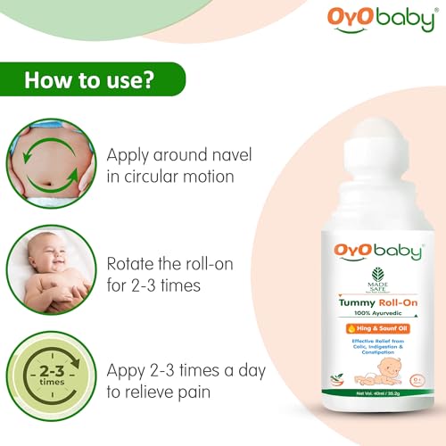 BLEND OF 100% NATURAL & AYURVEDIC INGREDIENTS: OYO BABY Tummy Roll-On has a soothing blend of Hing Saunf Ginger and other vital ingredients to provide relief.